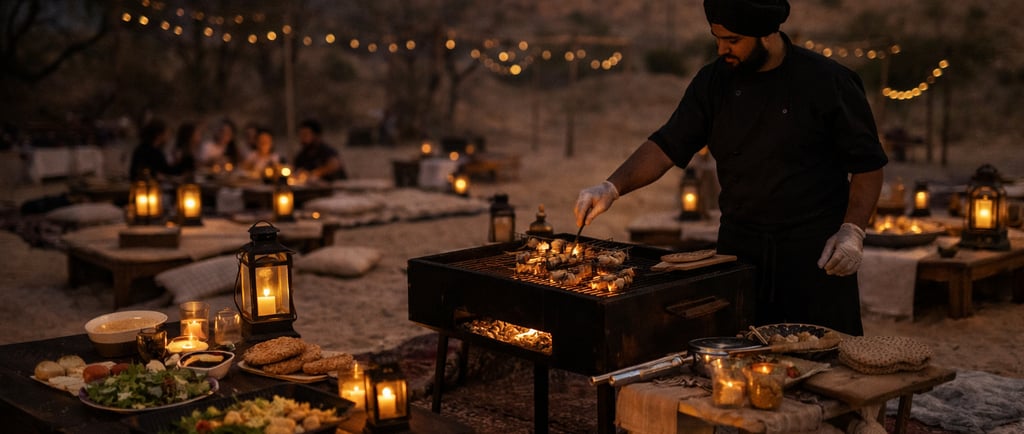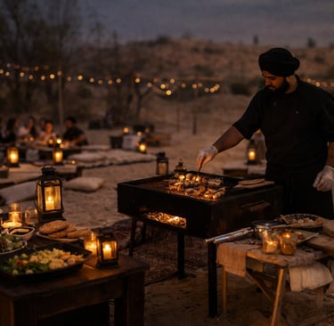 Enjoy a cozy evening under the stars with our live barbecue experience in Pushkar.