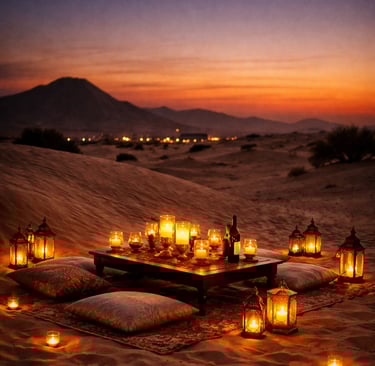Keywords: romantic dinner Pushkar, desert dinner Pushkar, candle light dinner Pushkar, luxury dining Pushkar, private dinner setup Pushkar